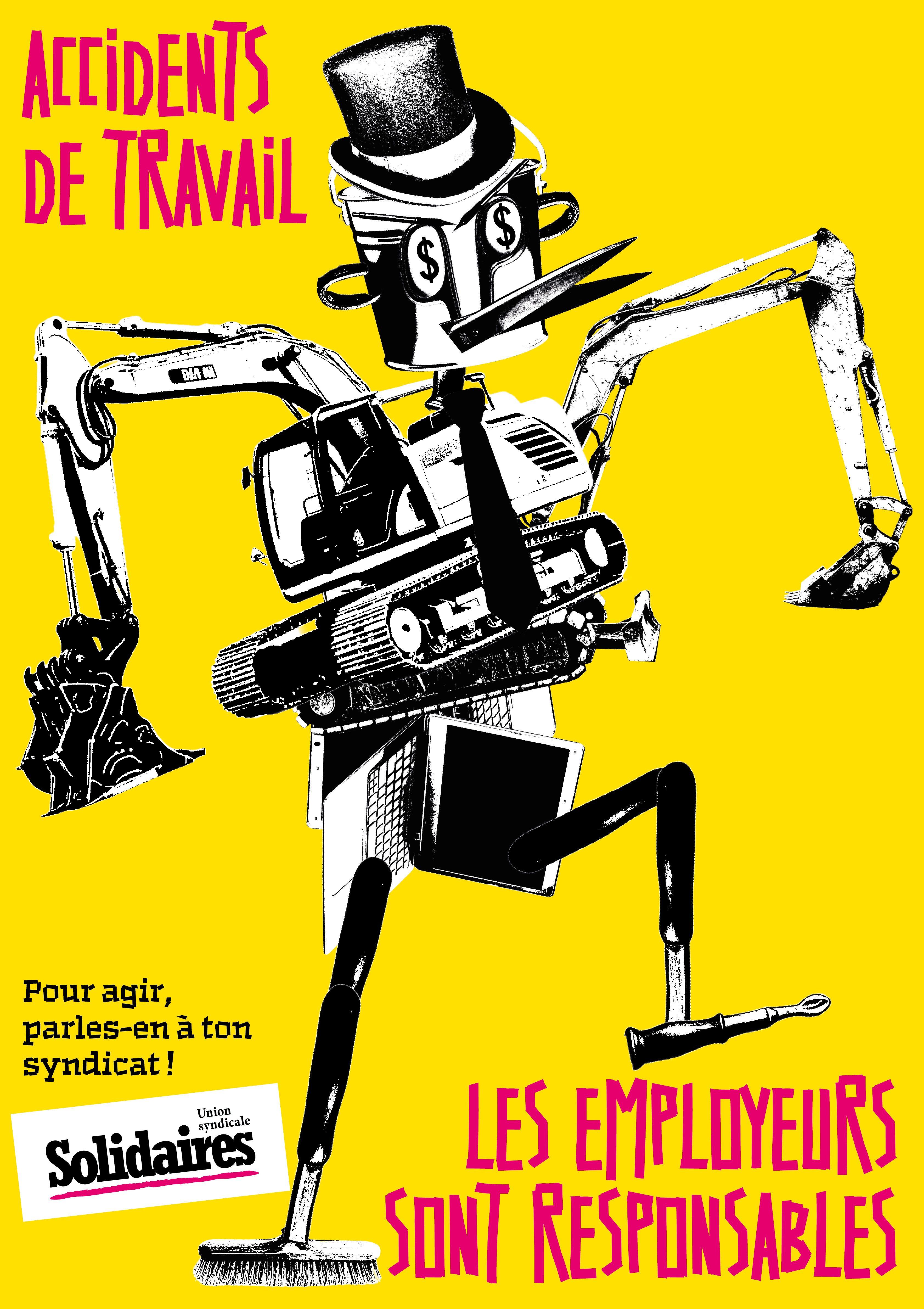 L'union syndicale Solidaires met en place une campagne "accident du travail" à retrouver sur le site solidaire.org : /sinformer-et-agir/brochures/brochures-et-argumentaires-interpro/faire-des-accidents-du-travail-un-enjeu-collectif-dans-lentreprise-et-dans-la-fonction-publique/