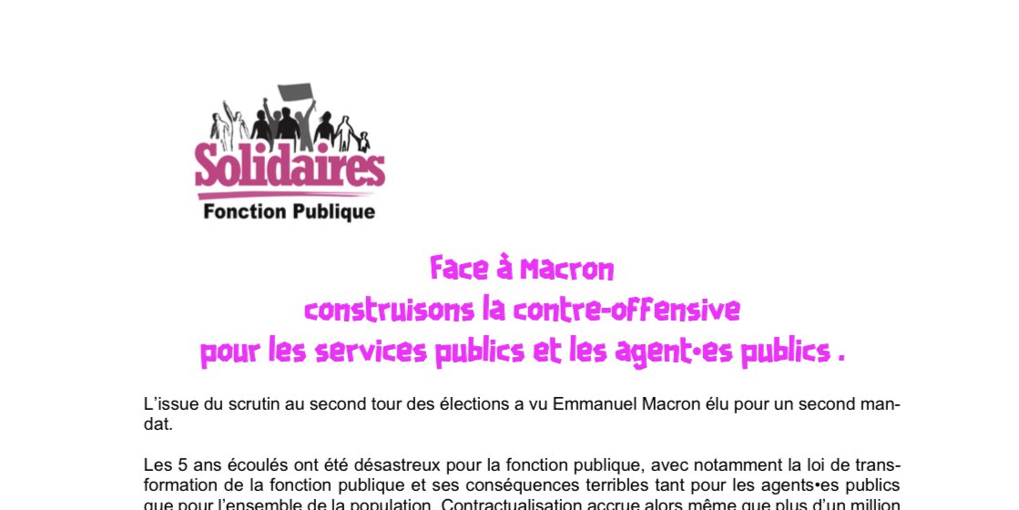 Pour Solidaires Fonction Publique ces orientations seront inadmissibles et intolérables pour des agent•es publics.