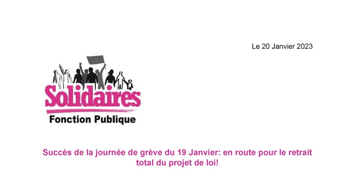 Solidaires Fonction Publique appelle les agent·es publics à poursuivre et amplifier la mobilisation par toutes les actions et les initiatives qu’iels décideront, avec pour objectif de faire du Mardi 31 Janvier une journée de grève et de manifestation la plus large possible. Solidaires Fonction publique met à disposition de l’ensemble des agent·es de la fonction publique un préavis de grève couvrant l’intégralité du mois de Janvier.