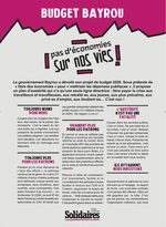 La tentative désespérée de F. Bayrou montre que nous pouvons gagner et ne fait que renforcer notre volonté de combattre le projet de budget injuste et dont les travailleurs·euses et la population, les plus précaires, les femmes, les retraité·es, les allocataires d’aides, les personnes malades feront plus particulièrement les frais...