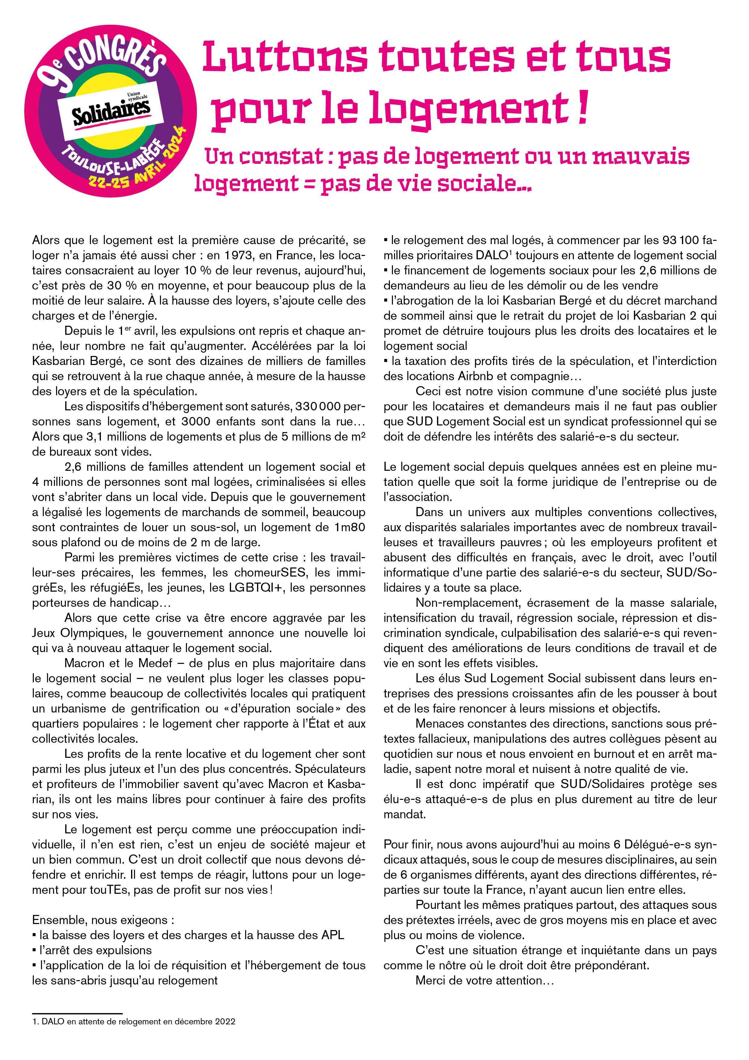 Ceci est notre vision commune d’une société plus juste pour les locataires et demandeurs mais il ne faut pas oublier que SUD Logement Social est un syndicat professionnel qui se doit de défendre les intérêts des salarié-e-s du secteur.