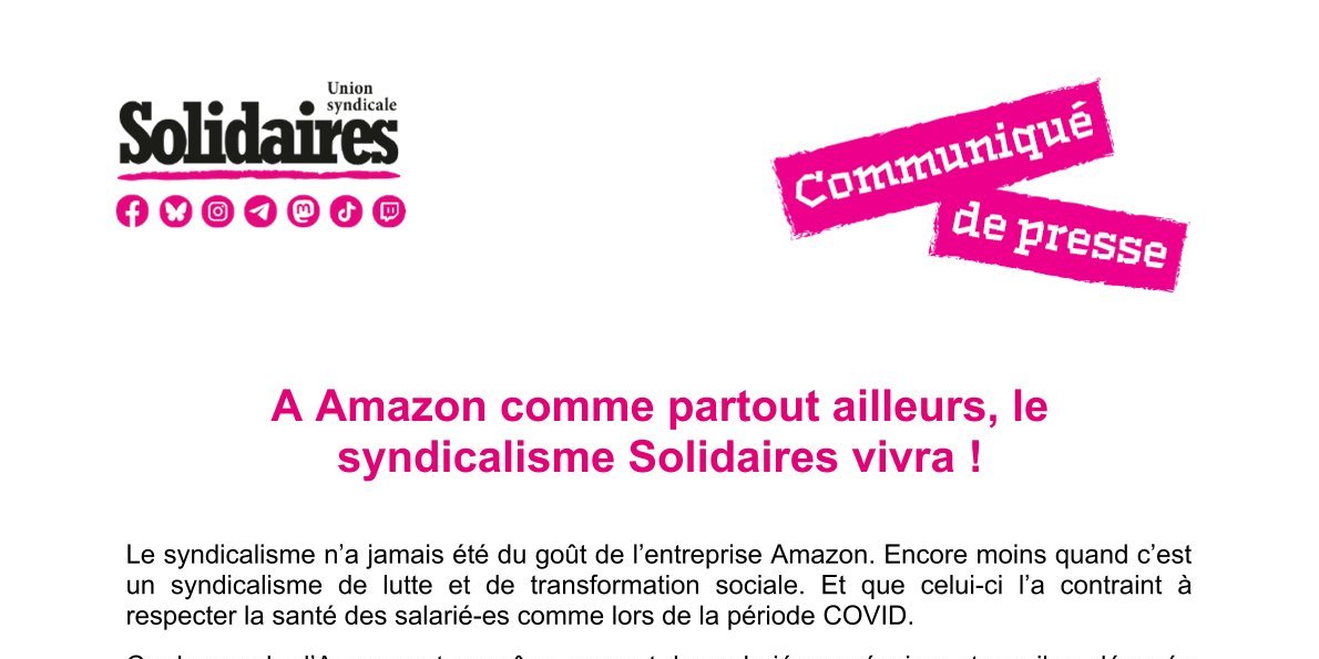 Le syndicalisme n’a jamais été du goût de l’entreprise Amazon. Encore moins quand c’est un syndicalisme de lutte et de transformation sociale. Et que celui-ci l’a contraint à respecter la santé des salarié-es comme lors de la période COVID.