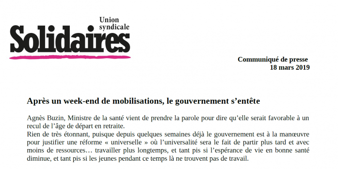 Rien de très étonnant, puisque depuis quelques semaines déjà le gouvernement est à la manœuvre pour justifier une réforme « universelle » où l’universalité sera le fait de partir plus tard et avec moins de ressources… travailler plus longtemps, et tant pis si l’espérance de vie en bonne santé diminue, et tant pis si les jeunes pendant ce temps là ne trouvent pas de travail.
