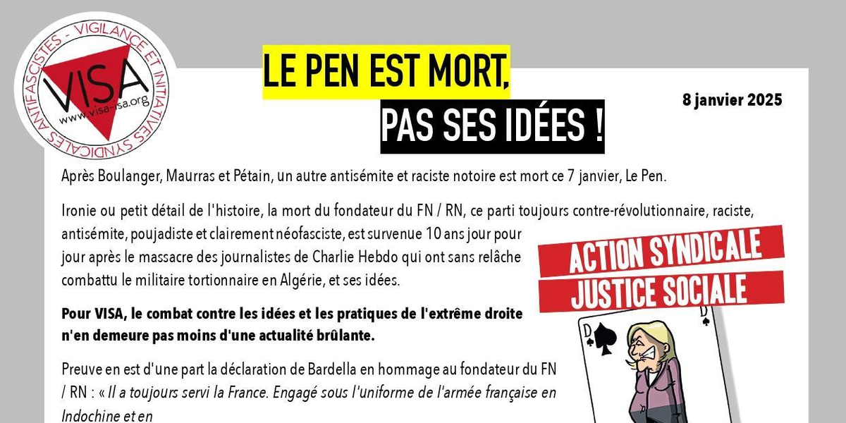 Communiqué Visa : Le Pen est mort, pas ses idées