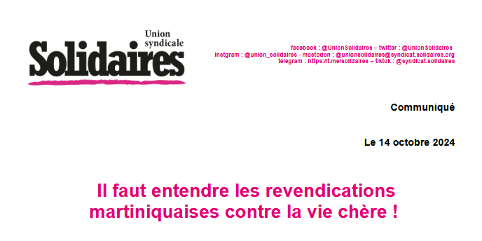 L’Union syndicale Solidaires apporte tout son soutien à la population de Martinique.
