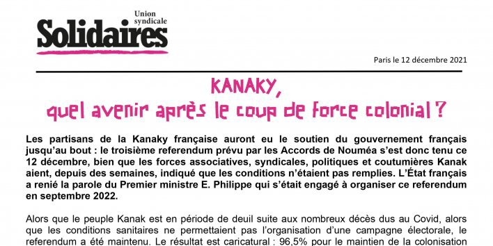 L’Union syndicale Solidaires participe au Collectif Solidarité Kanaky, en France.