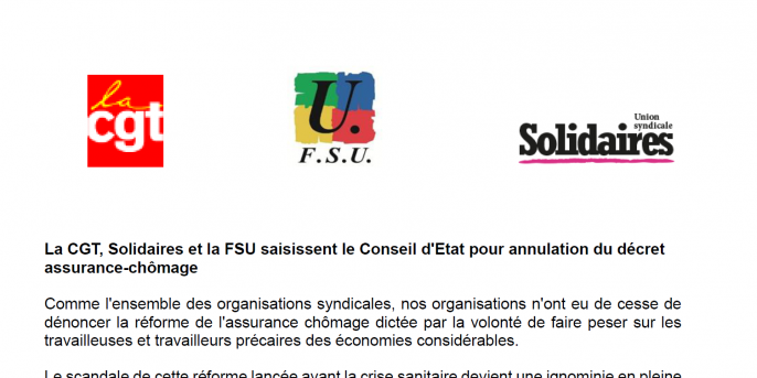 Après avoir obtenu une annulation partielle du précédent décret en novembre 2020, nous saisissons à nouveau le Conseil d'Etat, à la quasi-unanimité des organisations syndicales. Nous demandons au conseil de juger que les aménagements du gouvernement ne respectent pas sa décision précédente: les règles du nouveau décret conduiraient à une rupture d'égalité fondamentale et à un véritable changement de nature de l'assurance chômage.