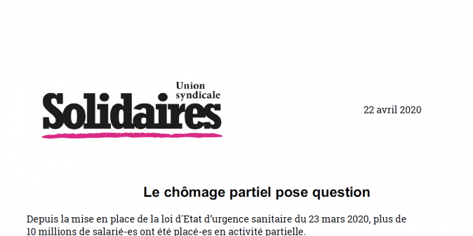 Depuis la mise en place de la loi d'Etat d’urgence sanitaire du 23 mars 2020, plus de 10 millions de salarié-es ont été placé-es en activité partielle.