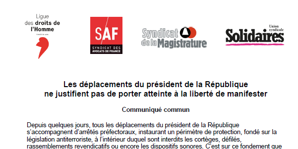 Les déplacements du président de la République ne justifient pas de porter atteinte à la liberté de manifester