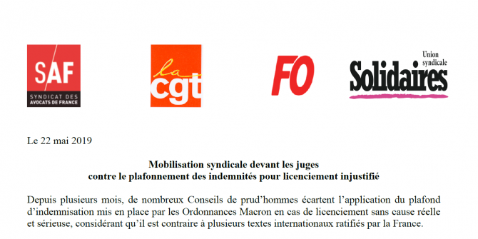 Pour ces raisons, nous espérons que, comme ils l’ont fait en 2008 pour le CNE, les juges sauront montrer leur indépendance vis-à-vis du Gouvernement et prendre les décisions qui s’imposent pour que la France respecte ses engagements internationaux, et que les salarié-es ne subissent pas cette réforme qui prétend limiter les condamnations des employeurs fautifs et priver les salarié-es illégalement licencié-es de leur juste indemnisation.