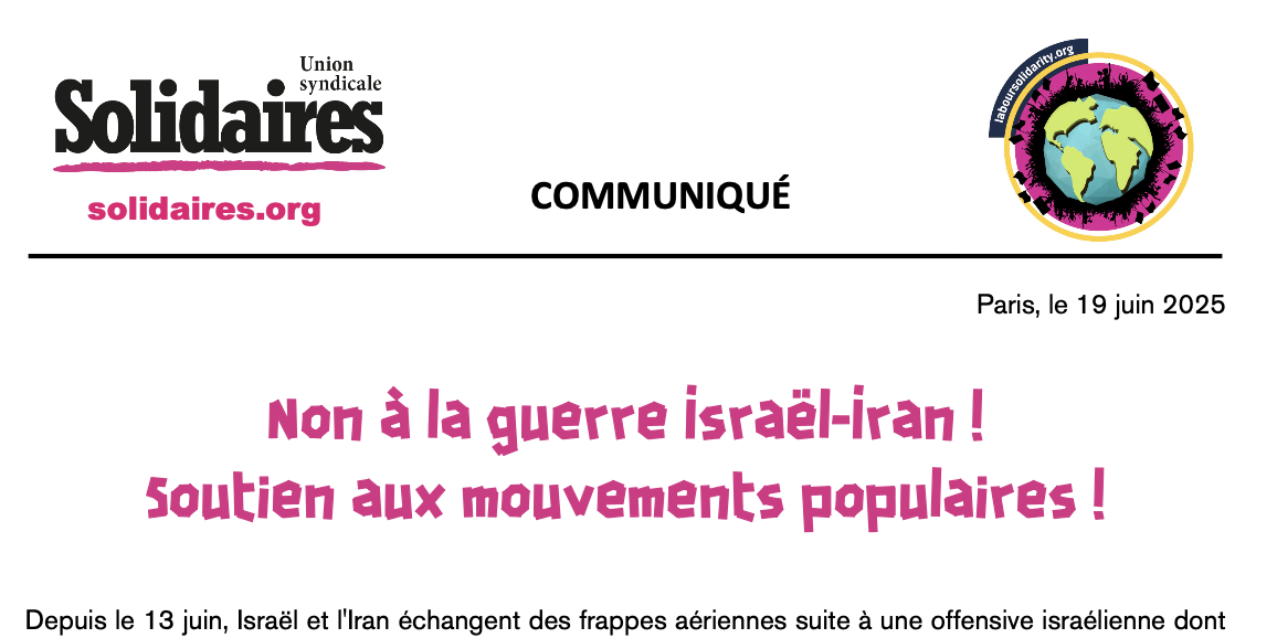 L’Union syndicale Solidaires réitère sa solidarité avec les prisonniers politiques et les défenseurs des droits humains en Iran.