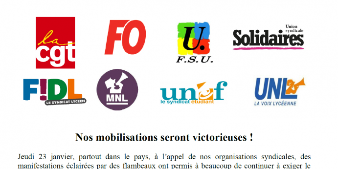 Nos organisations décident de se revoir le 29 janvier pour décider ensemble des suites.