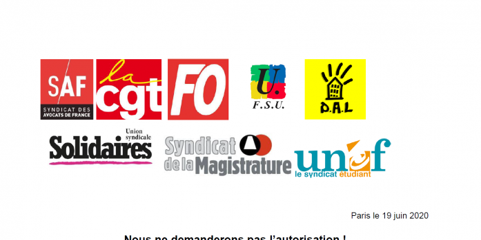 C’est pourquoi le Syndicat des Avocat de France, le Syndicat de la Magistrature, la FSU, l'Union syndicale Solidaires, la CGT, FO, et le Droit au Logement, ensemble ont saisi le Conseil d’État de plusieurs requêtes, afin que soit préservée la liberté de manifester.