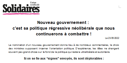 Solidaires reviendra rapidement plus en détail dans sa communication sur ses revendications face à la politique annoncée du nouveau gouvernement.
