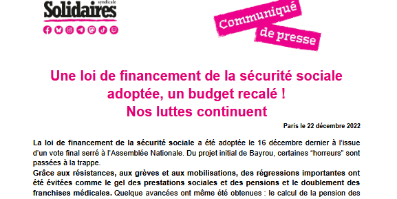 L’Union syndicale Solidaires est déterminée à maintenir le rapport de force pour gagner un budget de justice sociale, fiscale et environnementale, pour les besoins réels de la population.