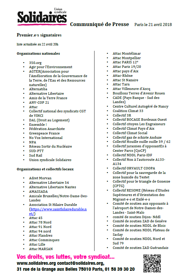 Le communiqué de l’assemblée des usages du 20 avril 2018 : https://zad.nadir.org/spip.php?article5641