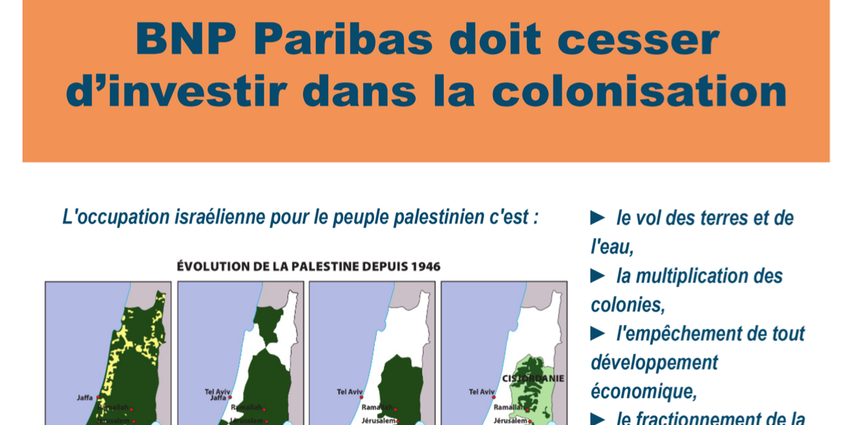 BNP Paribas doit cesser d'investir dans la colonisation