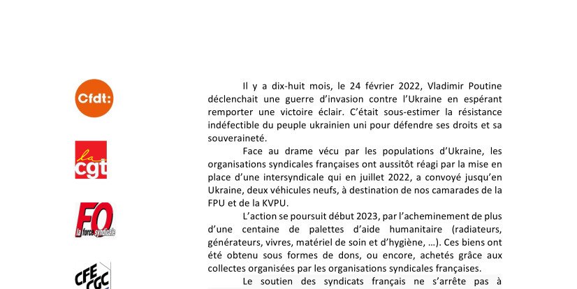 (Paris) 20 juin : Meeting du Convoi Intersyndical pour l'Ukraine (avec des représentant-es du FPU et du KVPU)