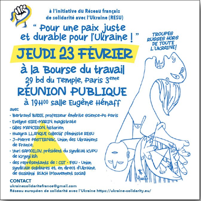 - des représentant-es de la CGT - FSU - Union syndicale Solidaires et, en direct d'Ukraine, de Sozialnyi Rukh (mouvement social)
