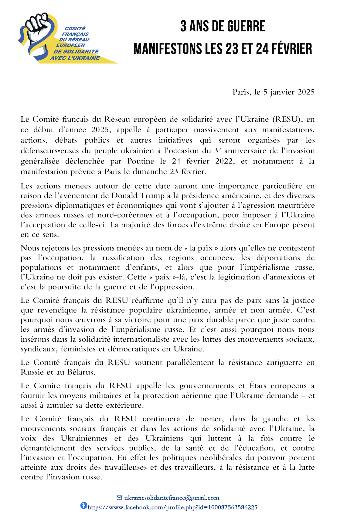Le Comité français du Réseau européen de solidarité avec l’Ukraine (RESU), en