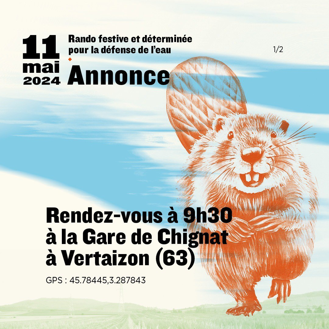 Ce samedi 11 mai à 9h30 à la gare de Chignat à Vertaizon, SUD Recherche et l'union syndicale Solidaires vous appellent à venir participer à la randonnée festive et déterminée pour la défense d'un accès équitable à l’eau et la préservation de la ressource près de Billom, aux côtés de la Confédération Paysanne, de Bassines Non Merci 63, des Soulèvements des Volcans et d’autres associations locales.