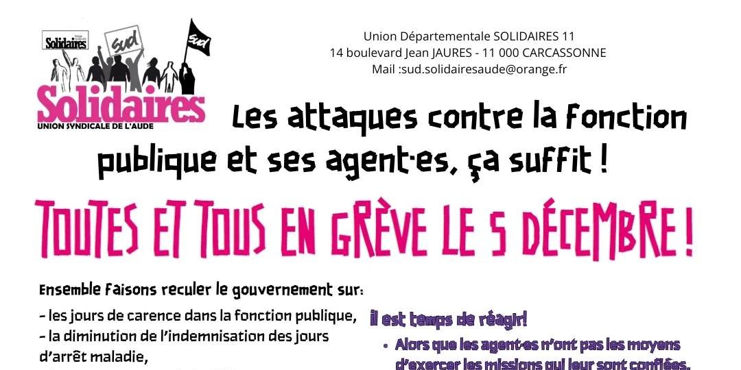 5 décembre 2024: Grève et manifestation à Carcassonne