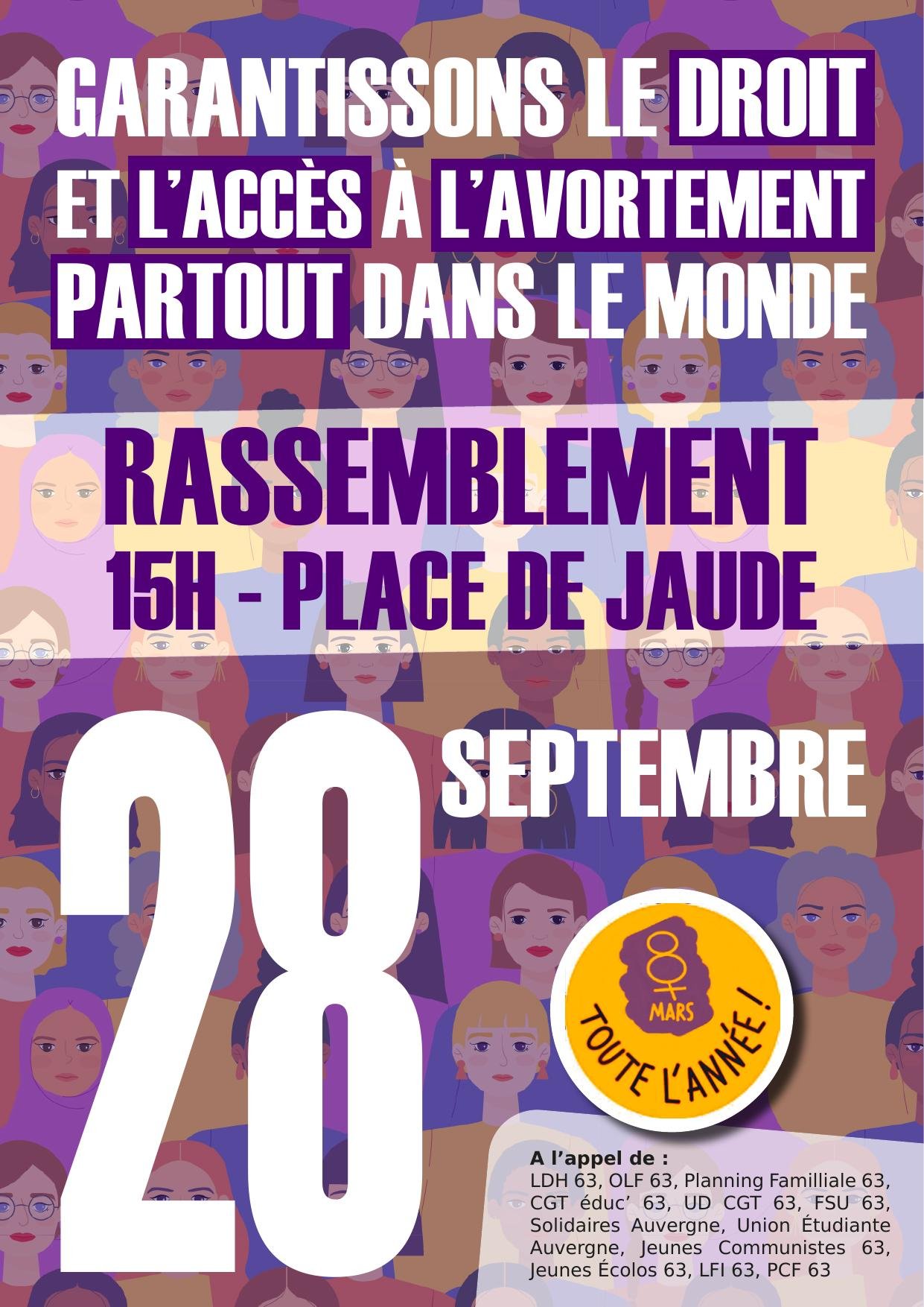 Appel unitaire LDH 63, OLF 63, Planning Familliale 63, CGT éduc’ 63, UD CGT 63, FSU 63, Solidaires Auvergne, Union Étudiante Auvergne, Jeunes Communistes 63, Jeunes Écolos 63, LFI 63, PCF 63