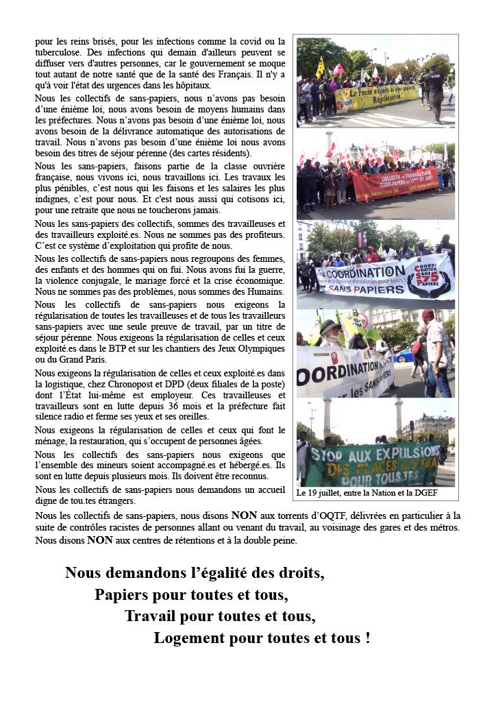 Appel de l'intercollectif des sans papiers d'Île de France : Halte au harcèlement !