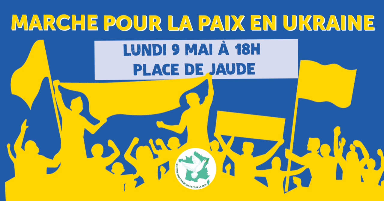 Le collectif départemental du Puy de Dôme pour la paix renouvelle son appel à une mobilisation la plus large pour la paix, par la voie du dialogue et pour une solution politique négociée. Plus que jamais l’action est nécessaire pour réaffirmer la condamnation de l’agression militaire du pouvoir russe contre l’Ukraine en violation du droit international.