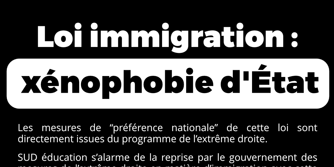 La journée du 19 décembre a franchi un nouveau cap. Le gouvernement a décidé de faire adopter une loi reprenant les pires positions de l’extrême-droite sur la préférence nationale, sa négation du droit du sol et des droits des travailleuses et travailleurs étranger-ères. C'est bien pour ça que les députés frontistes l'ont tou-tes voté ! Contrairement à ce qu'on ne cesse d'entendre, les raisons de la misère et de la précarité des travailleur-euses, des privé-es d'emploi, des retraité-es, etc., ce ne sont pas les étranger-ères ! car de l'argent il y en a, et ces richesses sont produites par le travail de tou-tes, qu'iels soient français-es ou étranger-ères.