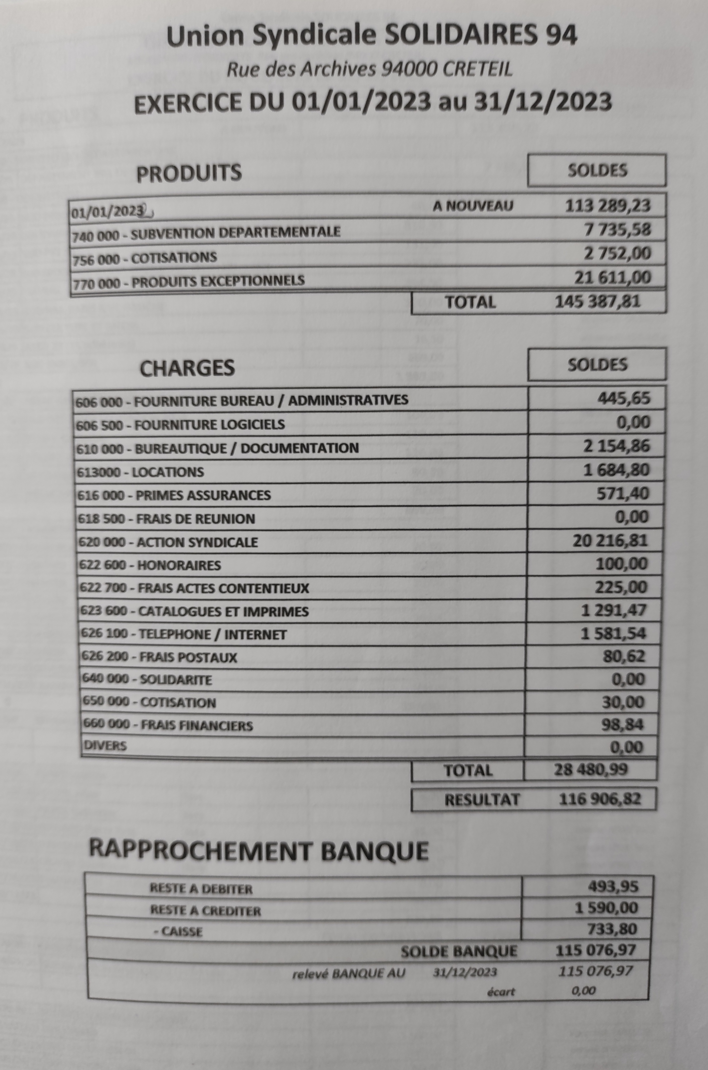 Publication légale des comptes 2023