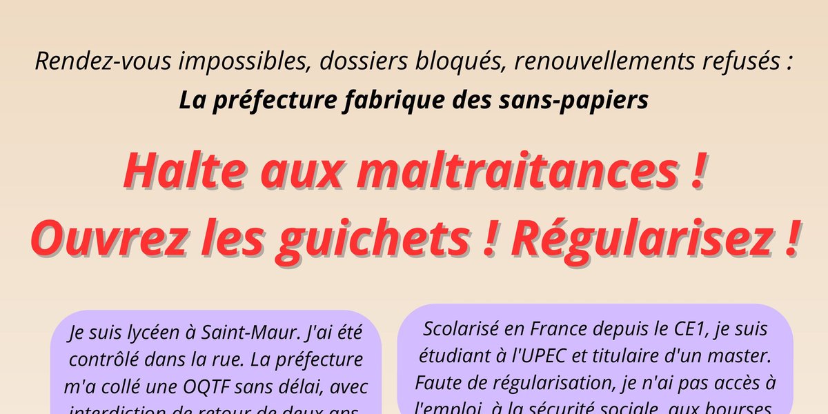 Rendez-vous impossibles, dossiers bloqués, renouvellements refusés : La préfecture fabrique des sans-papiers Halte aux maltraitances ! Ouvrez les guichets ! Régularisez !