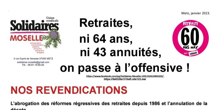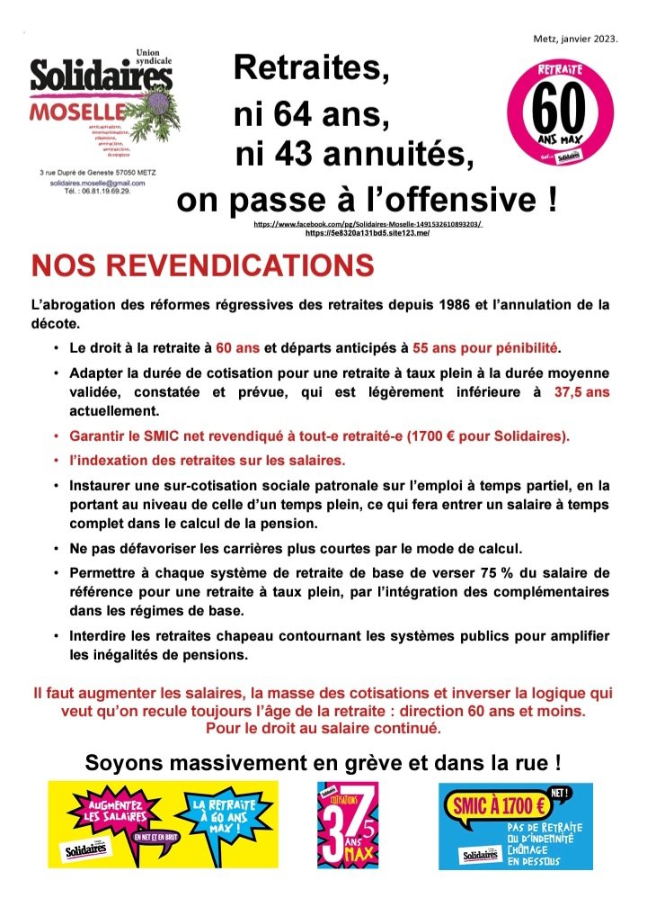 - Garantir le SMIC net revendiqué à tout-e retraité-e (1700 € pour Solidaires).