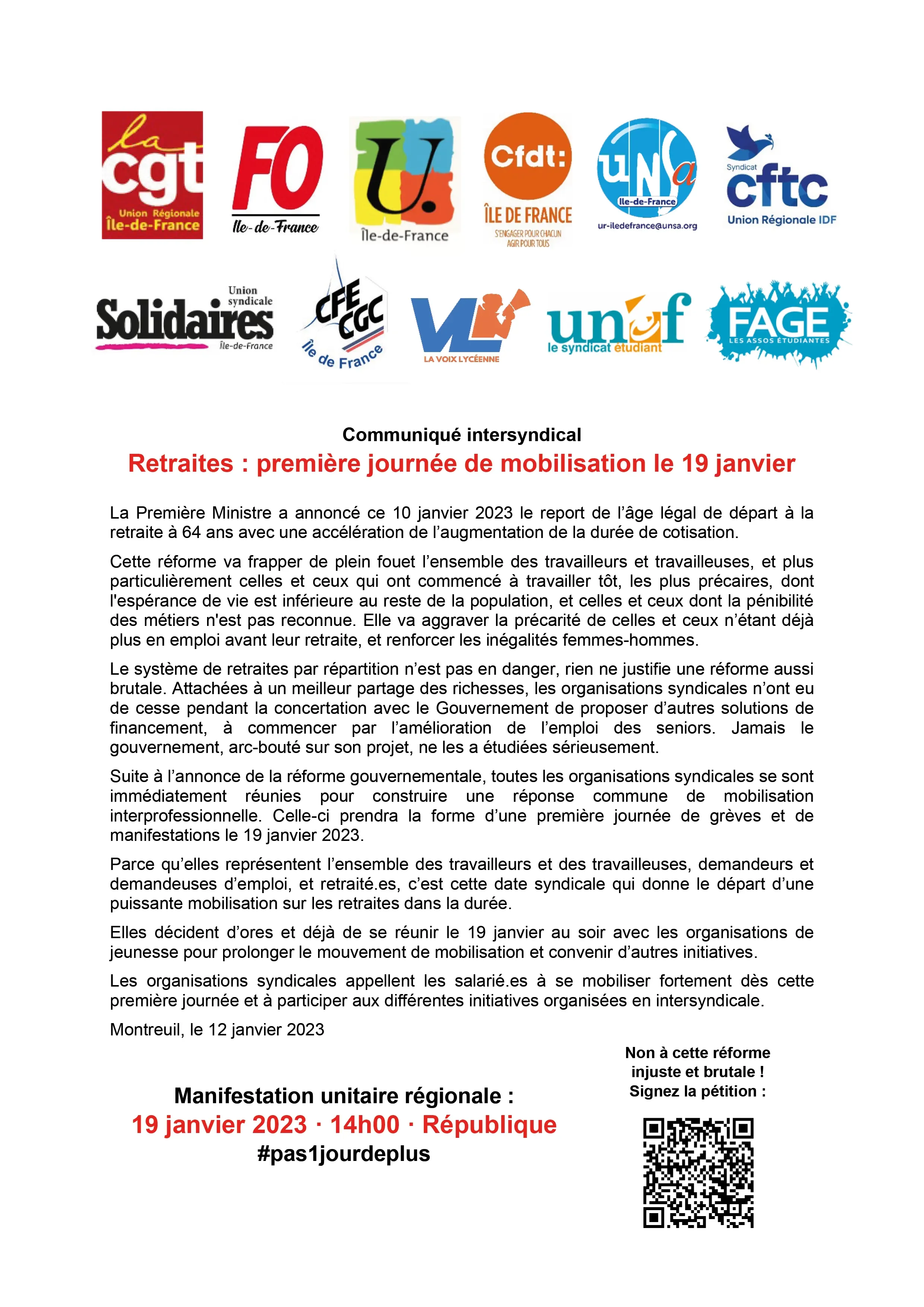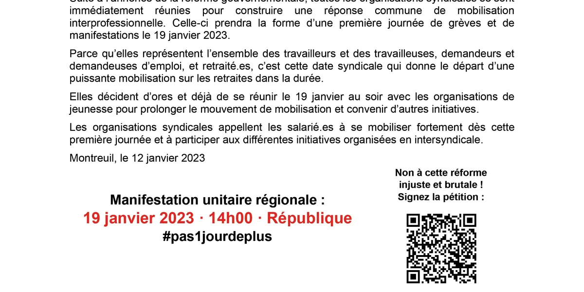Retraites : première journée de mobilisation le 19 janvier