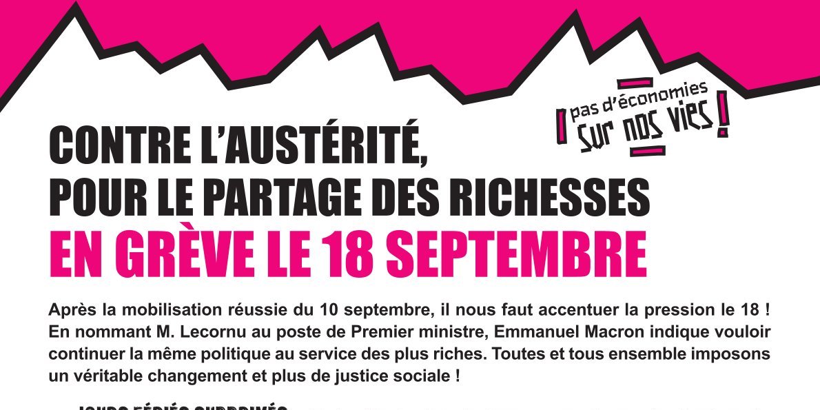 Après la mobilisation réussie du 10 septembre, il nous faut accentuer la pression le 18 !