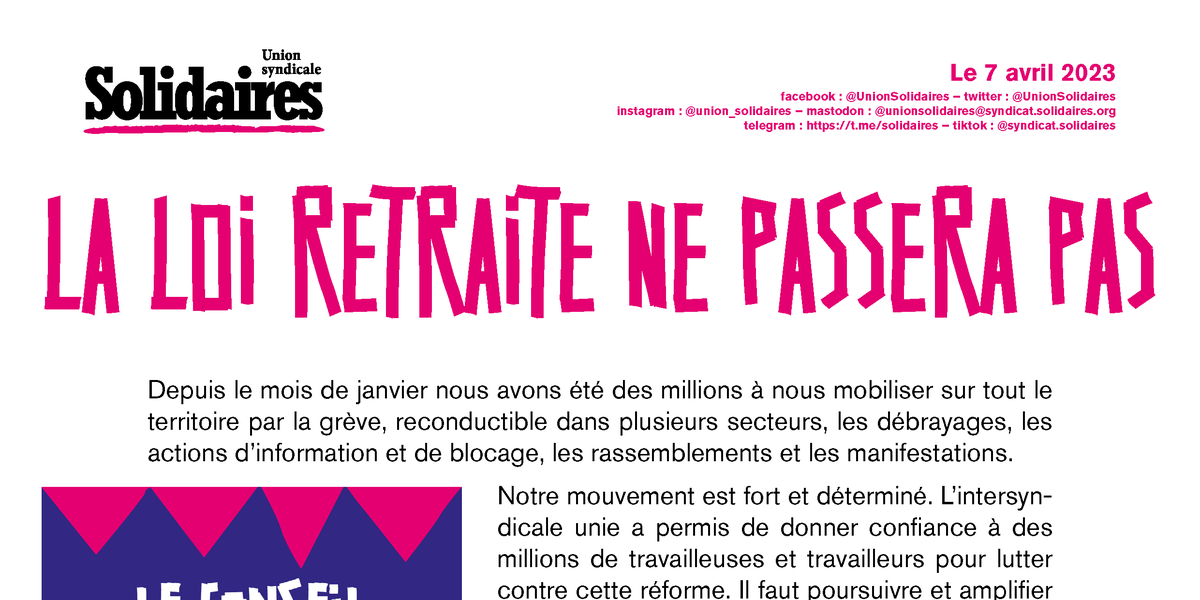 Pourquoi participer massivement à ces journées de mobilisation ? Parce que nous pouvons gagner ! Le gouvernement est fébrile : les tensions internes à l'exécutif tout comme la stratégie d’intimidation et de violences contre les manifestant.es en sont des preuves. Nous le savons aussi, le conseil constitutionnel prend des décisions qui sont liées certes au texte mais aussi à la situation sociale et politique générale.