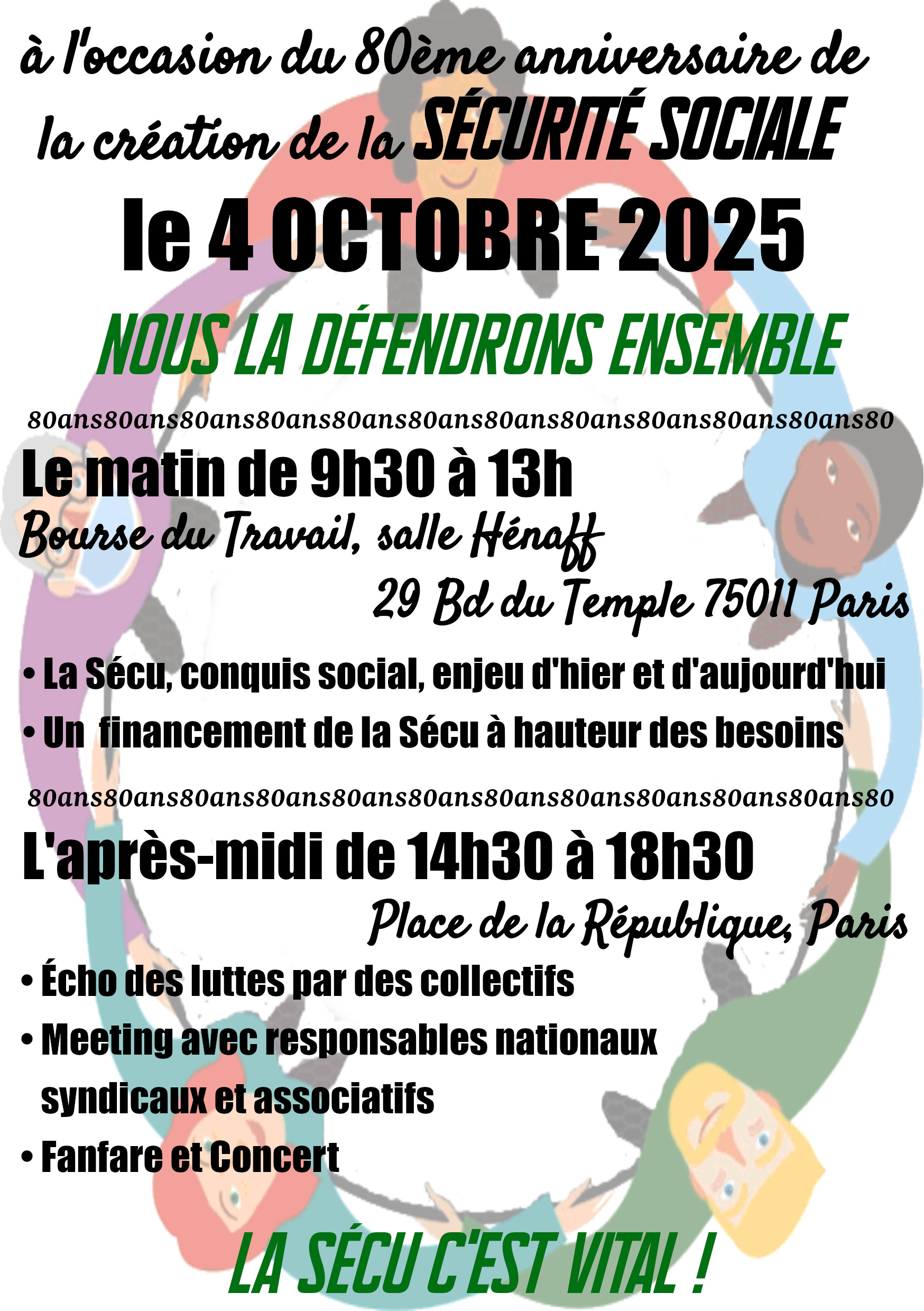 Nous nous engageons pour une initiative convergente à Paris le 4 octobre, 80ème anniversaire de la première ordonnance créant la Sécurité Sociale et lançons une pétition « La Sécurité Sociale, c’est vital » (en pj) !