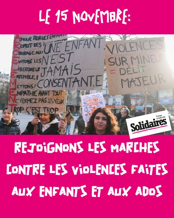 Pour défendre leurs droits, le collectif enfantiste appelle à se mobiliser et à rejoindre les manifestations organisées dans de nombreuses villes en France, le 15 novembre. L’Union syndicale Solidaires est signataire de cet appel à mobilisation.