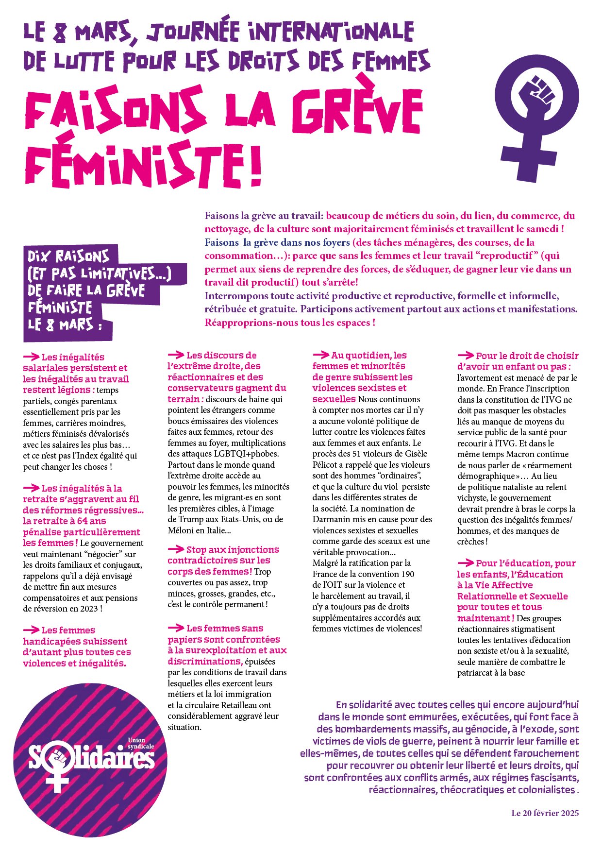 Dix raisons (et pas limitatives…) de faire la grève féministe le 8 mars :