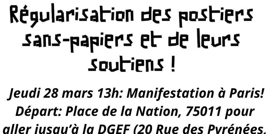 (Paris) Travailleurs sans-papiers du piquet Chronopost Alfortville 28 mois de lutte pour la régularisation ! Manifestation jeudi 28 mars