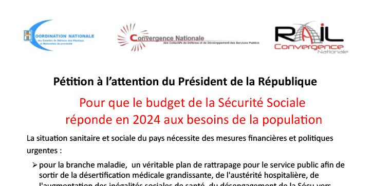 Pour que le budget de la Sécurité Sociale réponde en 2024 aux besoins de la population