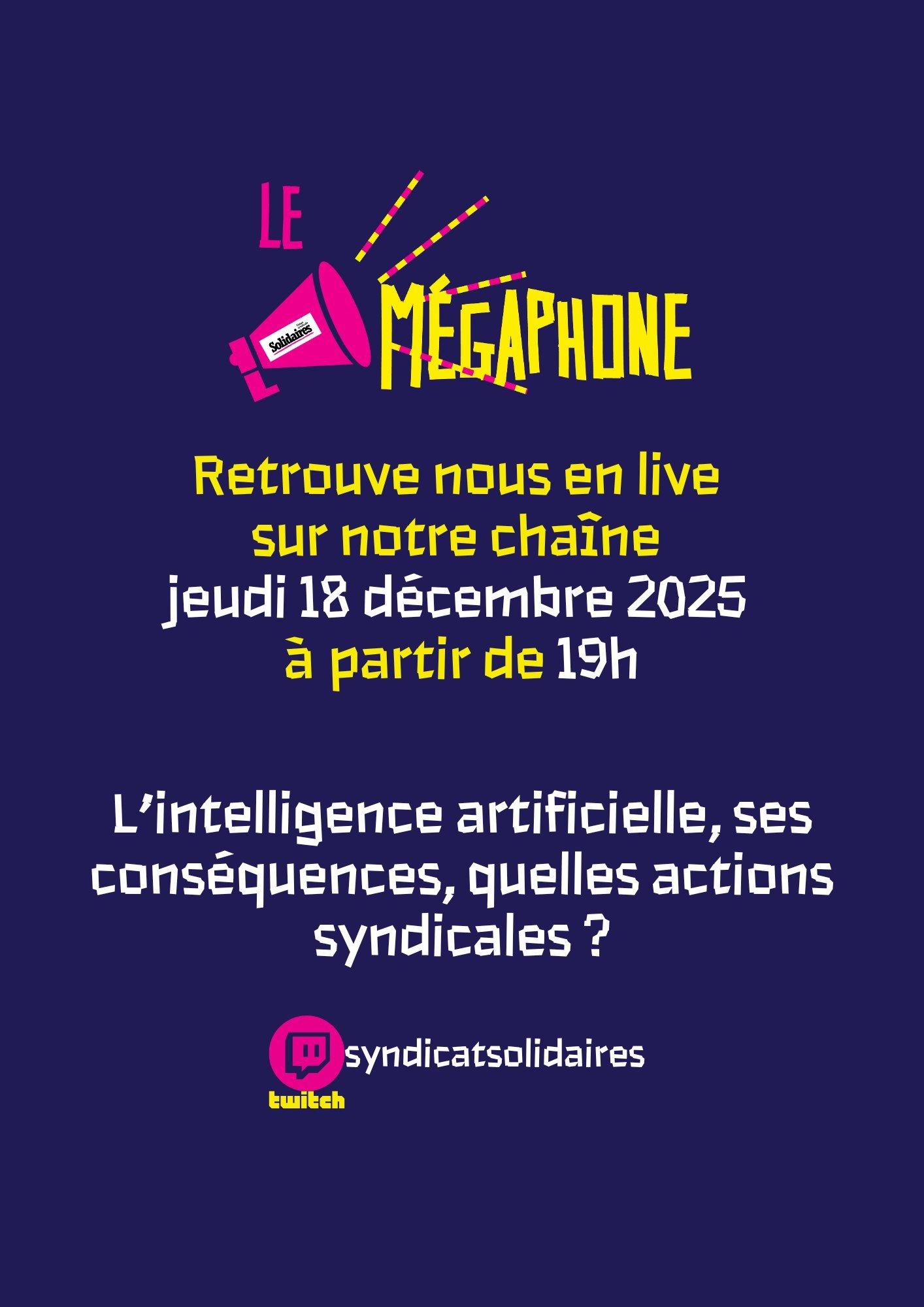 Le mégaphone est de retour le 18 décembre à 19h sur la chaîne twitch de Solidaires !