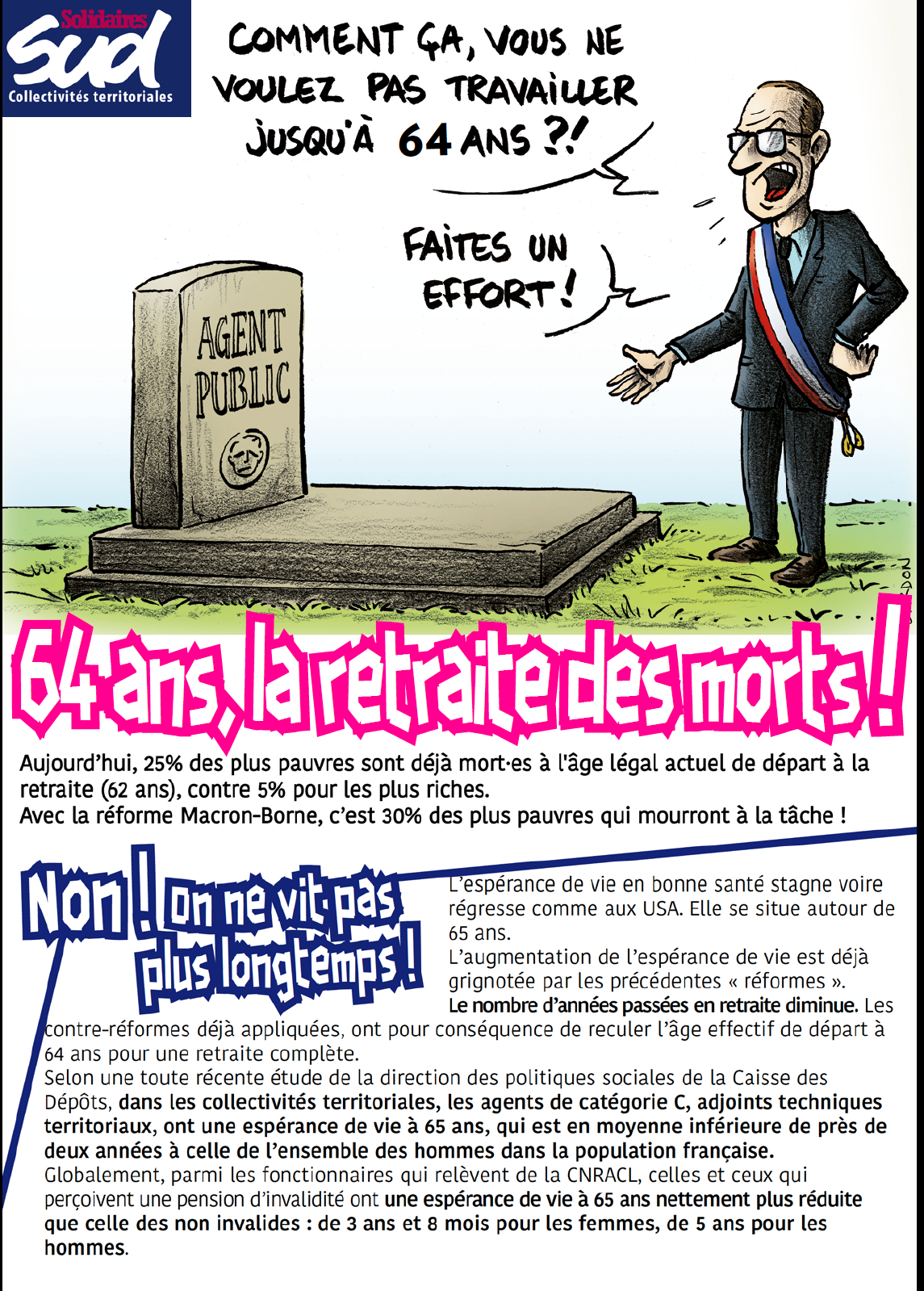 Fédération SUD-CT : 64 ans, la retraite des morts !