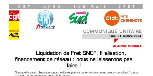 Les fédérations cheminotes CGT - UNSA - SUD-Rail - CFDT ont déposé une alarme sociale (DCI) auprès du PDG de la SNCF et préparent une riposte unitaire.