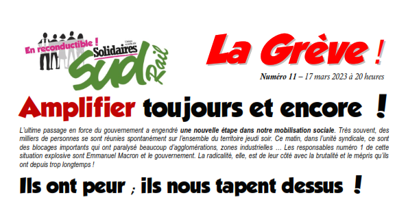 L’ultime passage en force du gouvernement a engendré une nouvelle étape dans notre mobilisation sociale. Très souvent, des milliers de personnes se sont réunies spontanément sur l’ensemble du territoire jeudi soir. Ce matin, dans l’unité syndicale, ce sont des blocages importants qui ont paralysé beaucoup d’agglomérations, zones industrielles … Les responsables numéro 1 de cette situation explosive sont Emmanuel Macron et le gouvernement. La radicalité, elle, est de leur côté avec la brutalité et le mépris qu’ils ont depuis trop longtemps !