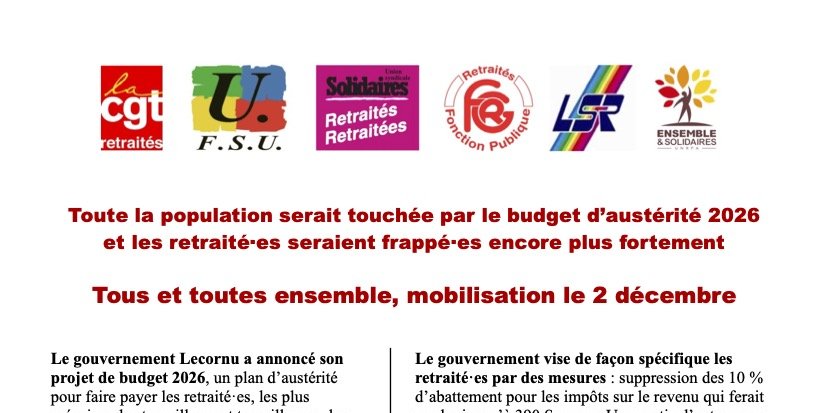 Toute la population serait touchée par le budget d’austérité 2026 et les retraité·es seraient frappé·es encore plus fortement.