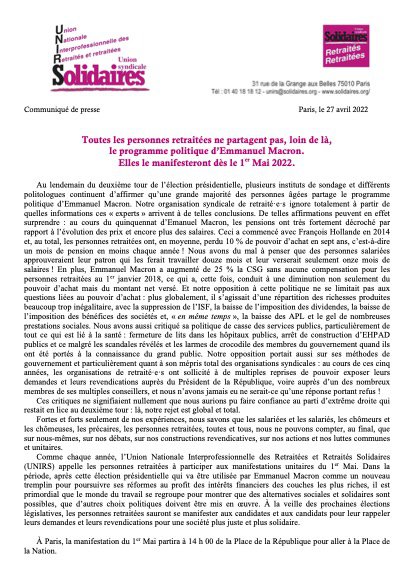 Elles le manifesteront dès le 1er Mai 2022.