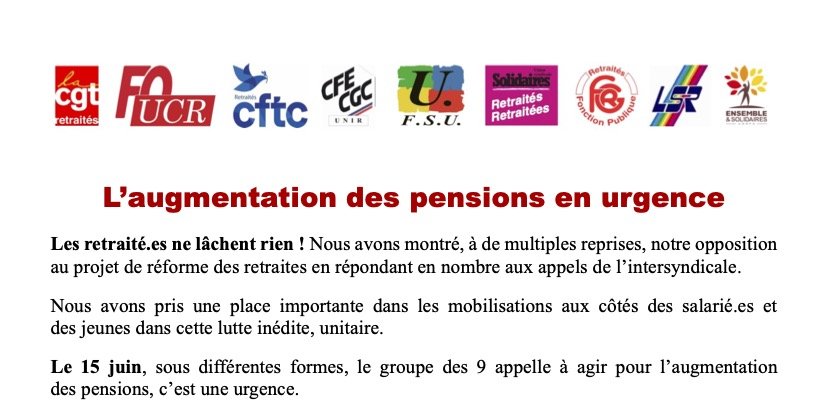 Le 15 juin, faisons entendre notre colère pour exiger l’augmentation des pensions.