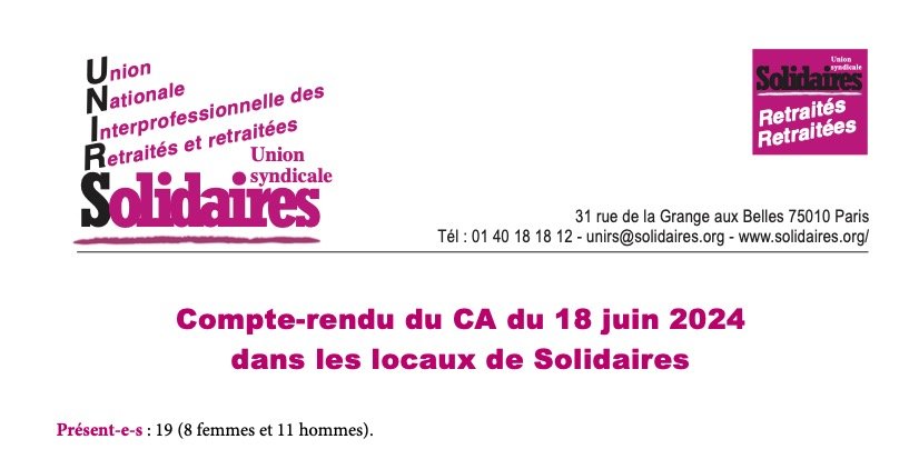 Bilan du Congrès de l’Union syndicale Solidaires des 22, 23, 24 et 25 avril 2024 à Toulouse – Labège. Les textes votés et les Résolutions à mettre en œuvre. Les réflexions prévues par le congrès dans lesquelles l’UNIRS va devoir s’investir.
