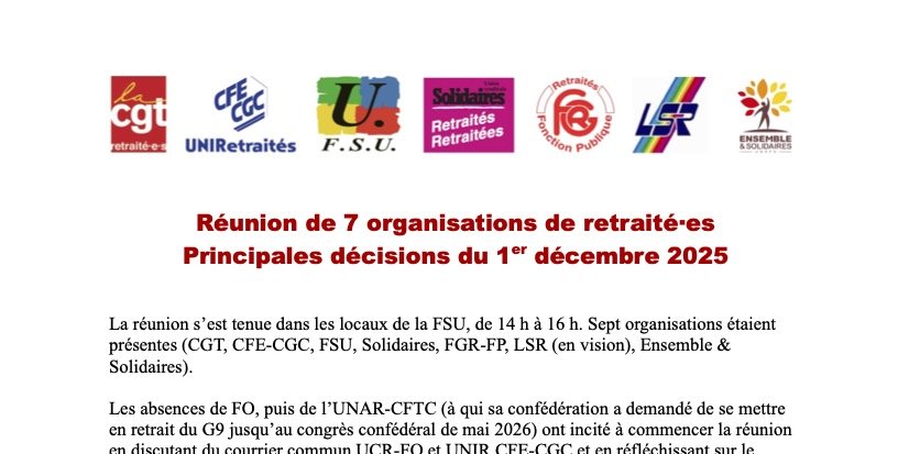 Voici les décisions importantes prises par les organisations de retraité·es et le compte-rendu complet de la réunion, réalisé par l'UNIRS